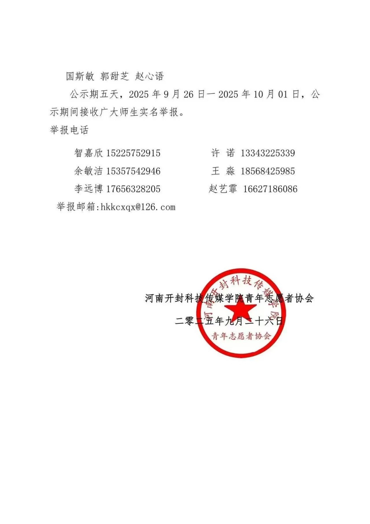 公示期为2025年9月26日至2025年10月1日,期间接收广大师生实名举报,举报电话及邮箱已同步公布。